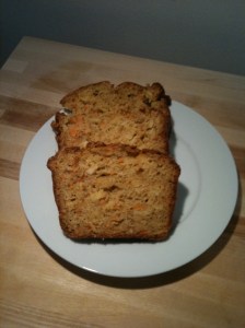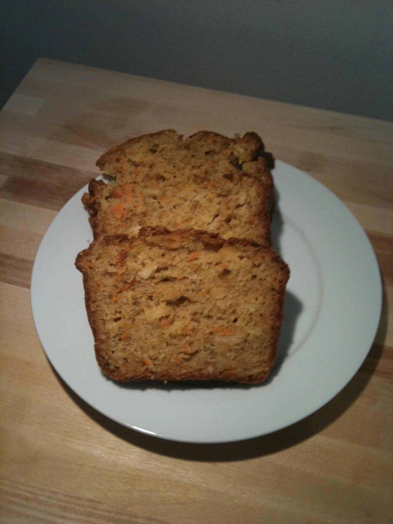 Préchauffer le four à 180 °C (350 °F). Dans un bol, bien mélanger les ingrédients secs (sauf le sucre) et les noix de Grenoble. Dans un autre bol, battre le sucre et les oeufs pour faire fondre le sucre, ajouter l’huile, les ananas et le tofu. Bien mélanger. Ajouter les carottes, mélanger. Ajouter graduellement les ingrédients secs et mélanger jusqu’à ce que la pâte soit homogène. Mettre dans un moule tubulaire ou un moule de 22 cm (9 po) légèrement huilé et enfariné. Cuire sur la grille au centre du four de 1 h 15 à 1 h 30. Laisser tiédir et démouler.