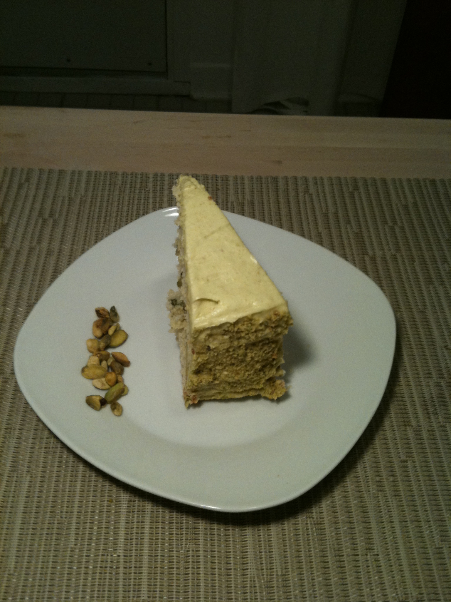 Ce gâteau majestueux à la pistache doit être fait avec des noix non salées. Malheureusement, elles ne se vendent pas partout. On les trouve souvent dans les magasins d’aliments naturels. À défaut, achetez quand même des pistaches écalées salées. Il suffira de les rincer sous l’eau puis de les faire sécher au four pendant quelques minutes à 180 °C (350 °F).