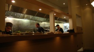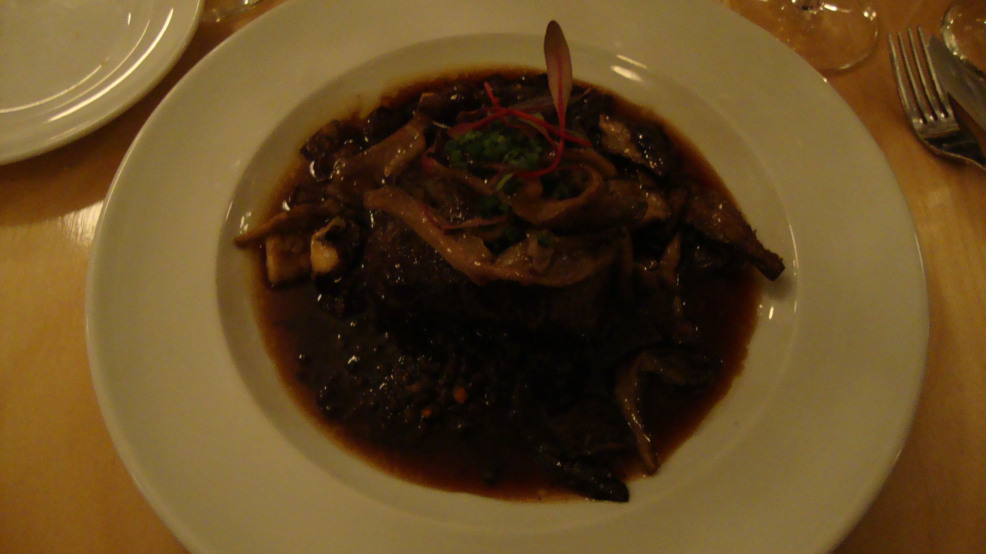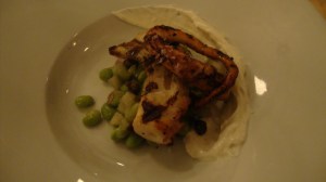 Pour l’entrée, j’ai commandé de la pieuvre. Pieuvre qui est d’abord pochée, puis marinée, pour finalement être grillée. Elle est servie sur un lit d’edamame (fève de soya), accompagnée par un yogourt de lait de chèvre. J’adore la pieuvre et je dois dire que c’est l’une des meilleures que j’ai mangée jusqu’à présent. Elle était tendre et goûteuse, et mélangée avec le yogourt, c’était divin.
