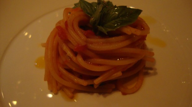 Par la suite arriva le spaghetti al pomodoro tardivo raro travaglini. Je dois dire que ce fût mon plat préféré. Vous me direz c’est un simple spaghetti aux tomates, vous aurez tort. Les tomates tardives sont tout simplement hallucinantes. Je n’ai jamais mangé des pâtes aussi savoureuses (elles étaient faites maison, bien évidemment).