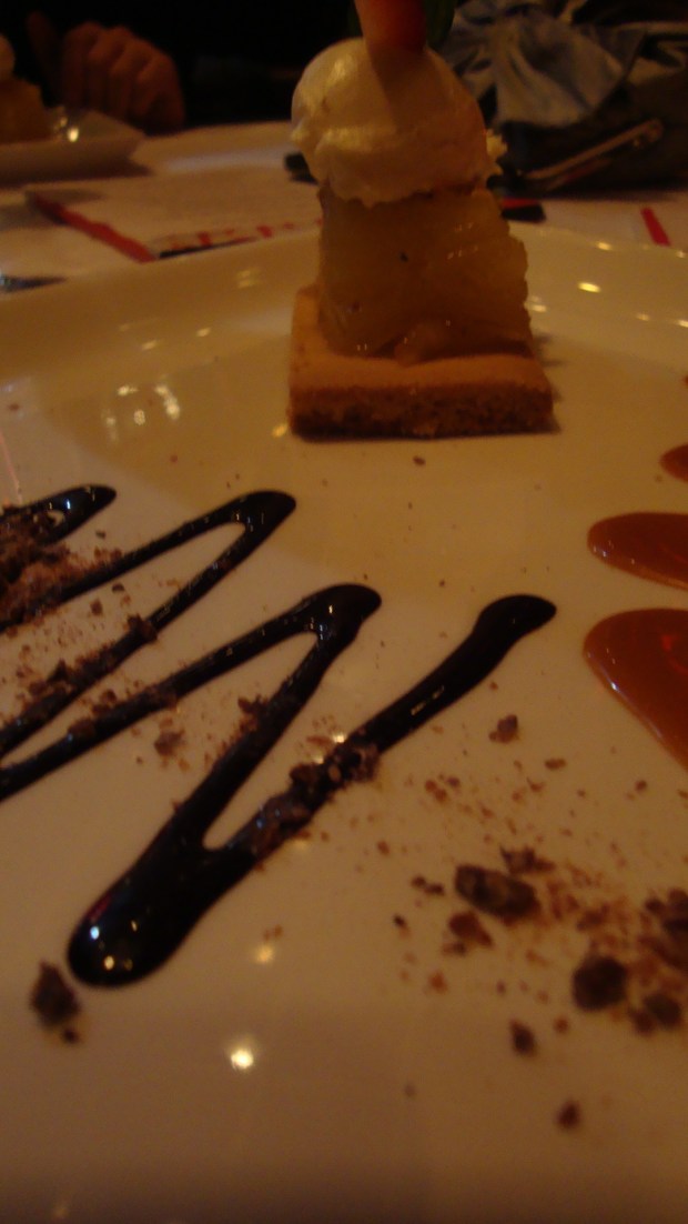 Rendu là, je commençais à avoir beaucoup de vin et de nourriture dans le corps. Je vous ai caché le fait qu’avec chaque service, nous avions un accord mets et vins. Le sommelier venait nous expliquer la provenance des vins et nous donner les détails de l’accord.