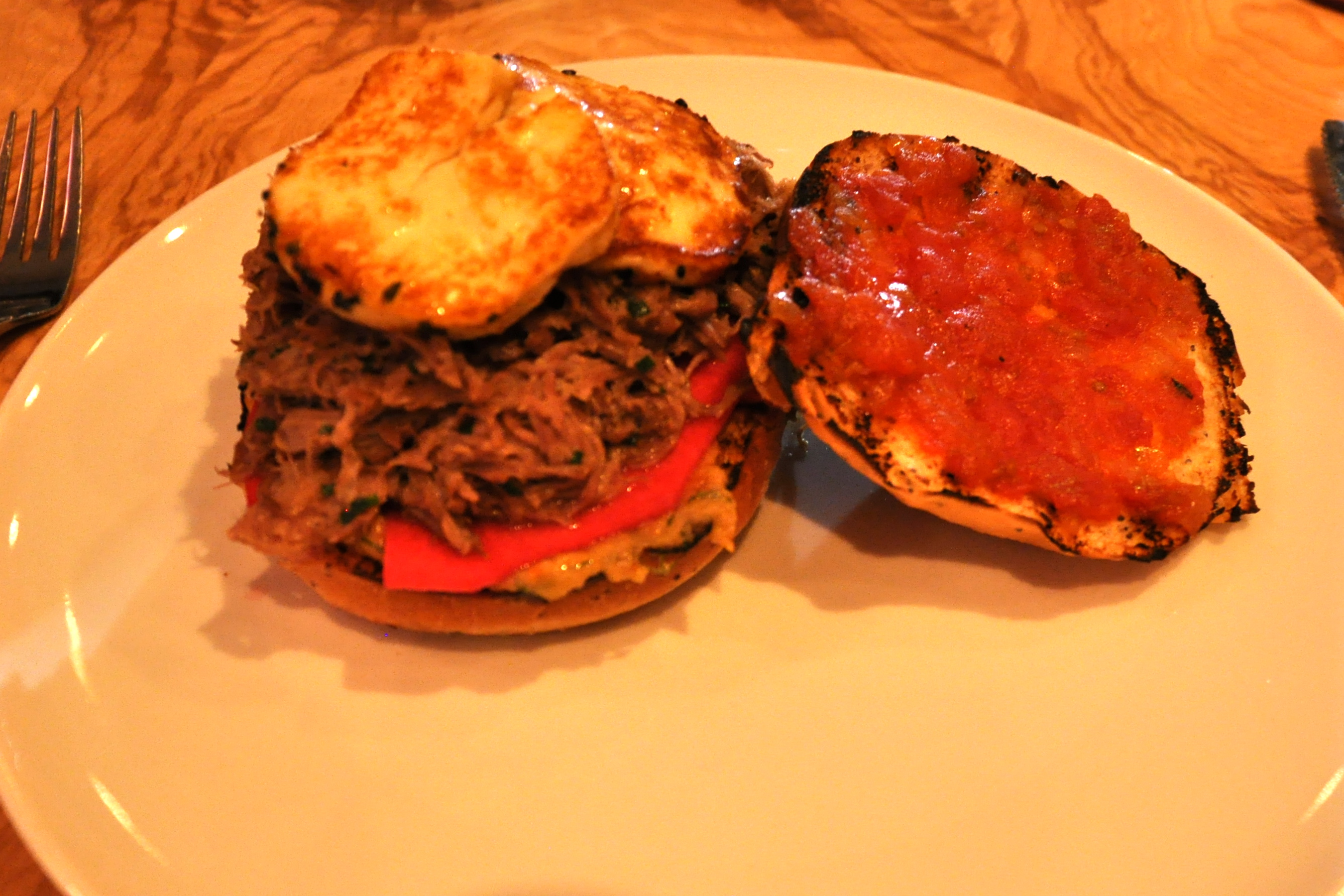Le souper se continua avec un burger de Ribs d’agneau et sauce barbecue à la Guinness, compote de tomates et fromage grillé.  J’ai bien aimé ce burger, je l’aurais pris avec légèrement plus de sauce, mais sinon, il était vraiment bon.
