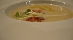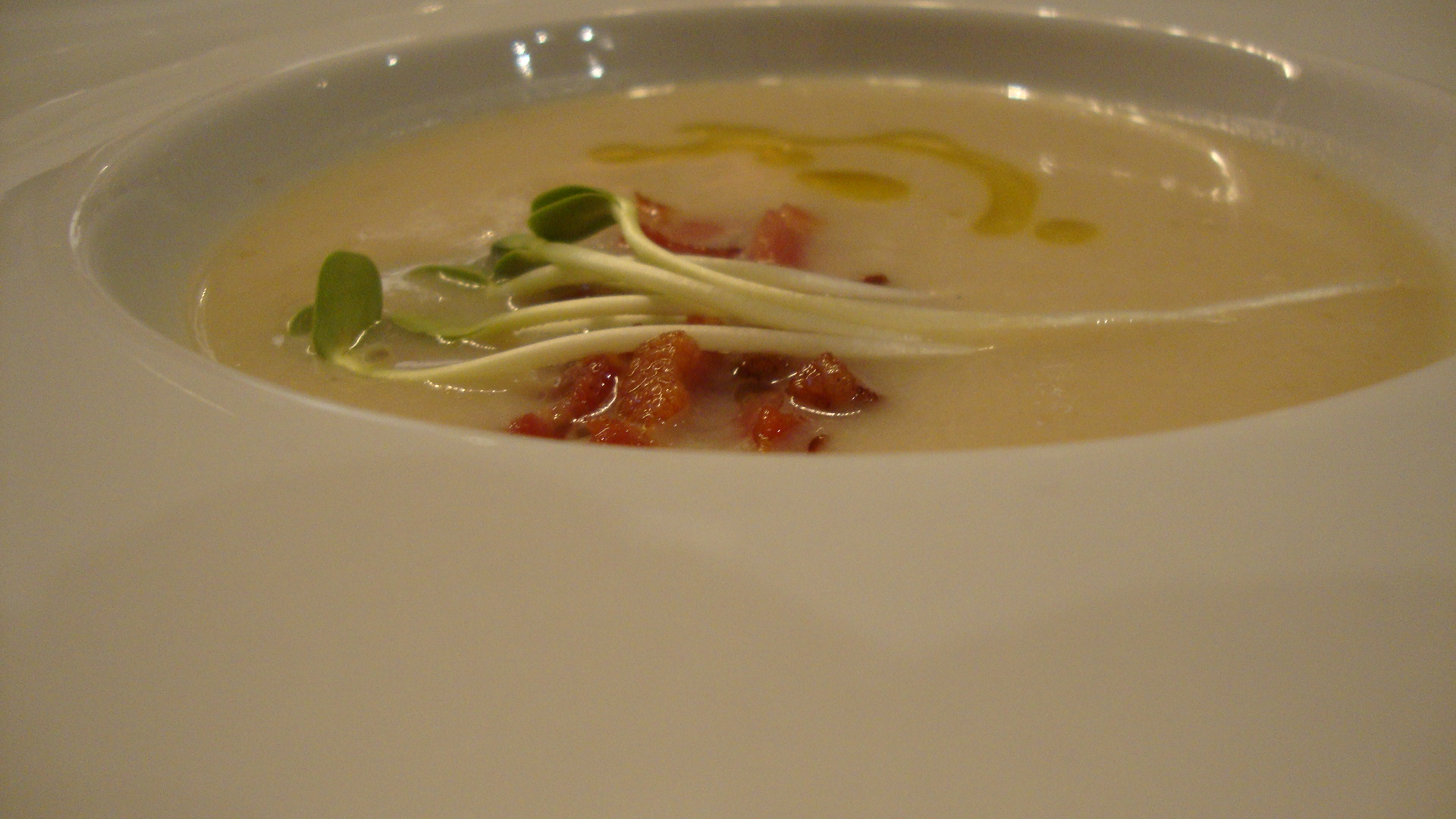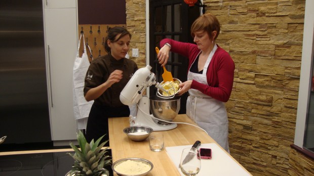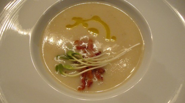 J’ai participé à la première avec Sophie Chiasson. J’étais en compagnie de Carrie MacPherson, Clarah Germain et Claude Arsenault (ainsi que d’autres participants) et nous avons cuisiné un potage chou-fleur, poires jaunes et lardons en entrée (la recette se trouve à la fin de l’article).