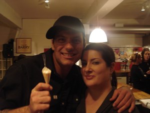 La verrine était super! Le mélange de mangue, de saumon et de ricotta ajoutés au croquant des arachides était vraiment très bon. Nous nous sommes régalés. Nous sommes ensuite passés au dessert, alors que le chef nous a concocté une verrine banane et fraise sur de la crème glacée surmontée de crème fouettée et décorée avec une banane caramélisée. J’étais vendu au concept! Le dessert goûtait vraiment très bon.
