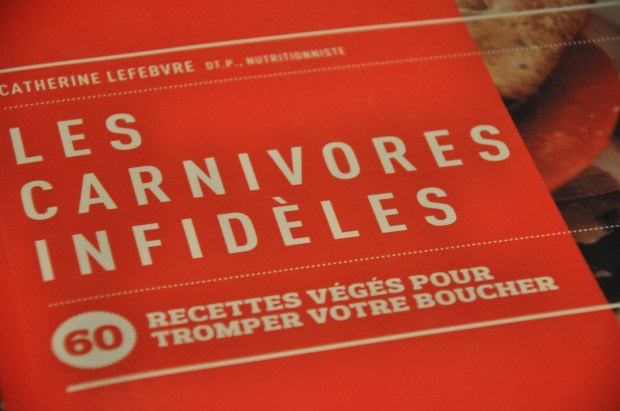 Lorsqu’une nutritionniste lance un livre végétarien, on pourrait s’attendre à quelque chose de peu palpitant. Ce n’est pas le cas de Catherine Lefebvre et son livre « Les carnivores infidèles« , qui a piqué ma curiosité. Elle nous y propose « 60 recettes végés pour tromper notre boucher ». J’ai assisté au lancement de ce livre et je dois dire que la brochette (jeu de mot alimentaire haha) de collaborateurs de ce livre impressionne. Si vous connaissez le web 2.0 ou les foodies montréalais, ces noms vous diront sans doute quelque chose : Bobby Grégoire, Katerine-Lune Rollet, Andrea Doucet Donida, Laurent Lasalle, Marie-Annick Boisvert, Gildas Meneu, et plusieurs autres, se sont prêtés au jeu. J’ai bien hâte de tenter les recettes suivantes : aussi sexy qu’un pain de viande, pas de steak, blé d’inde, patates, lasagne pour frileux, burger avec pas d’viande.