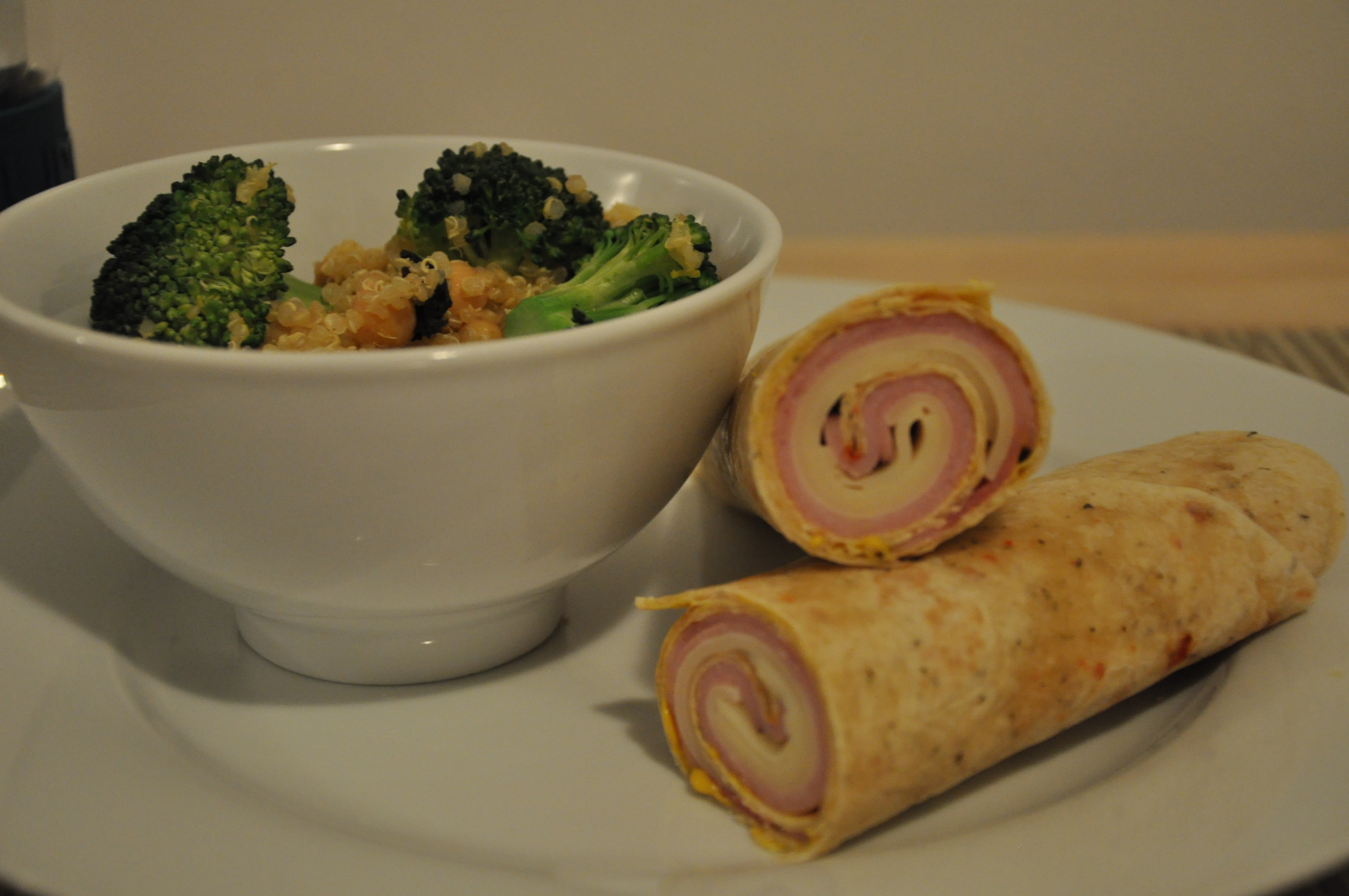 Mélanger tous les ingrédients ensemble et déguster. J’ai accompagné le tout d’un roulé au fromage et jambon, pour mon lunch demain ce sera parfait. –