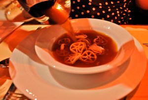 Le repas commença par une soupe de poisson, mayo épicée et pecorino peppato. L’entrée était délicieuse, goûteuse, sans être trop présente. J’ai vraiment adoré ce plat.