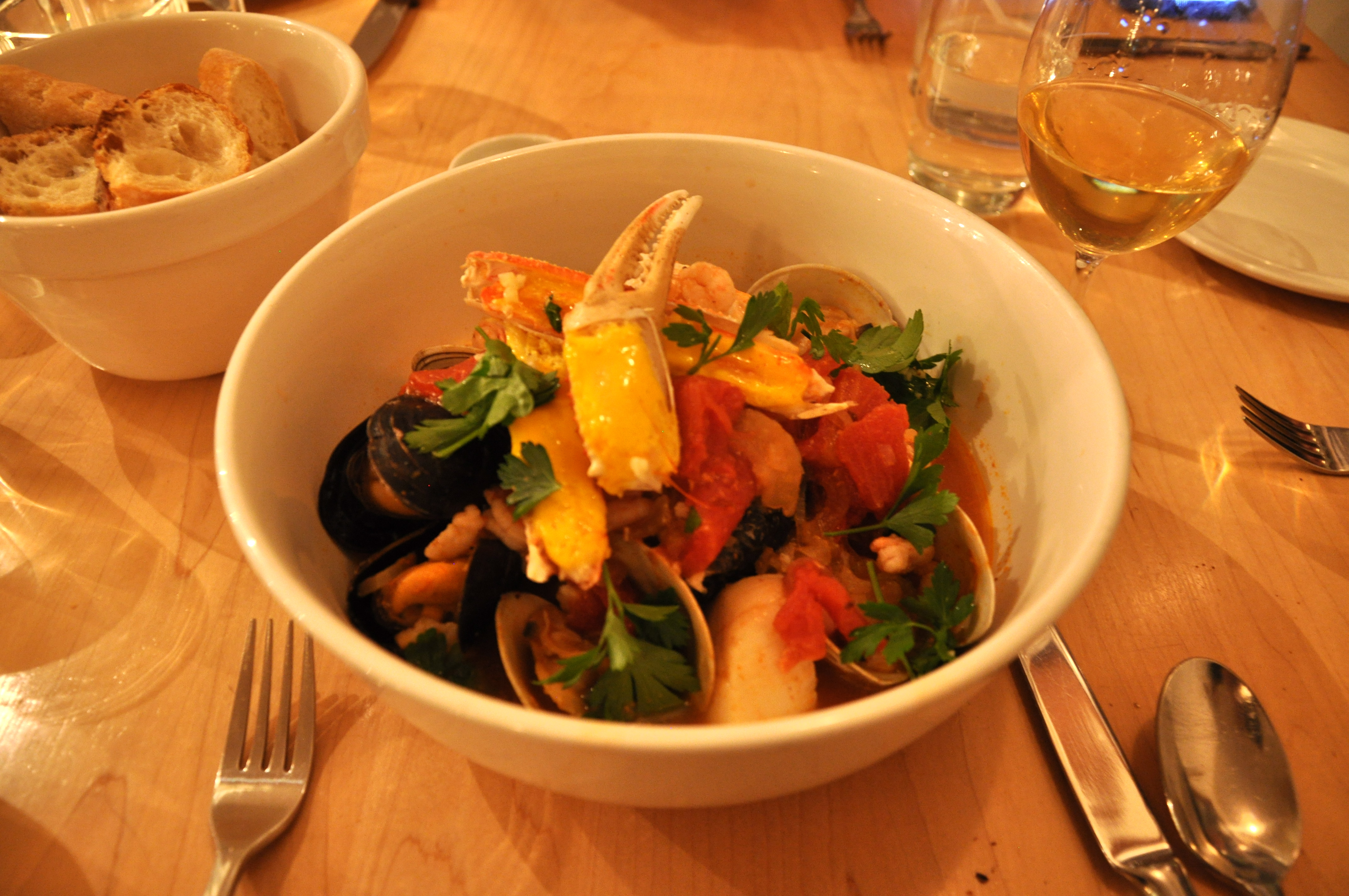 Cioppino, crabe, crevette, pétoncle, palourde, moule et poisson du jour.