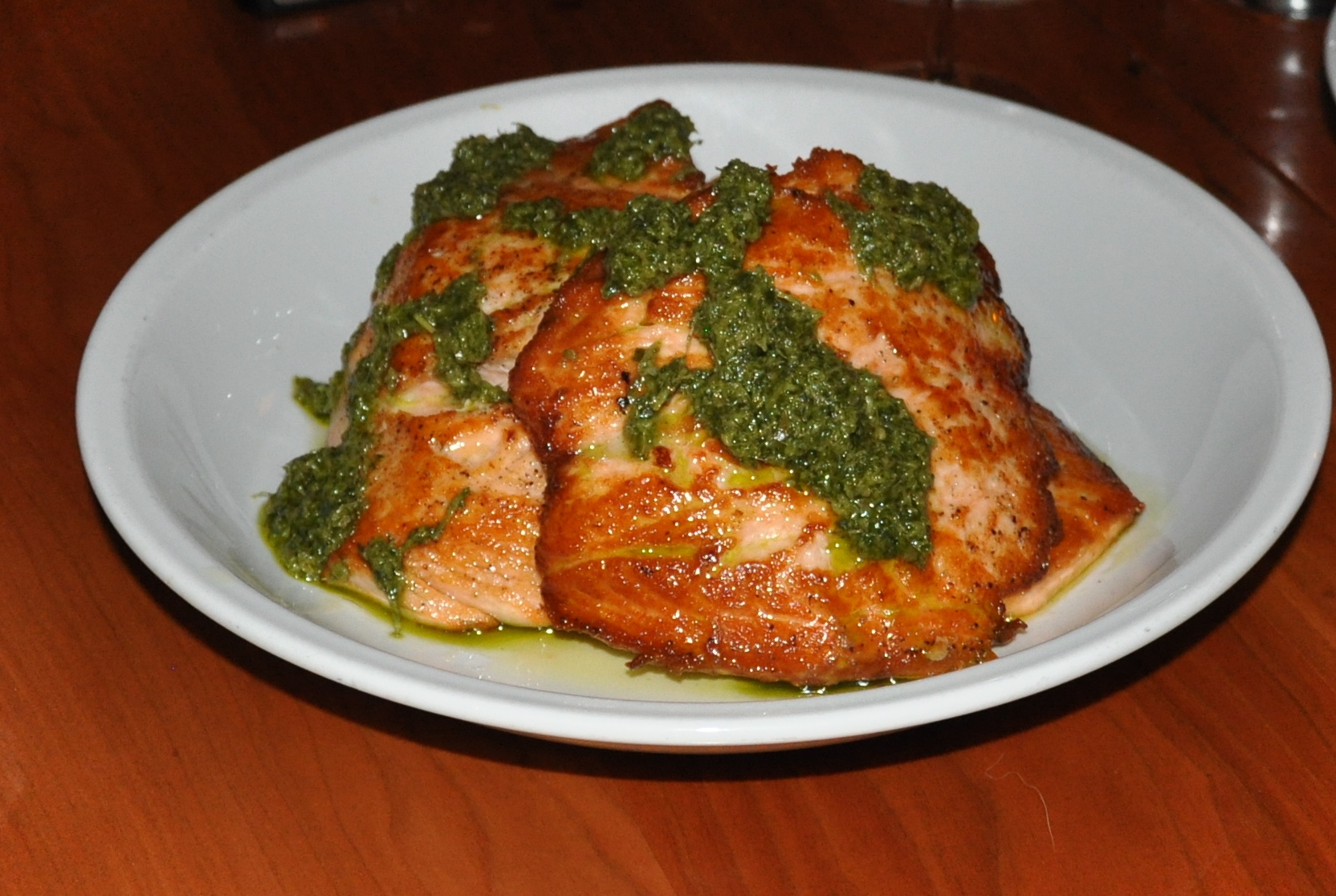 Pour les accompagnements, voir la recette de salade de tomates. J’ai également fait une purée de brocoli, beurre et basilic. –