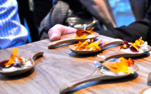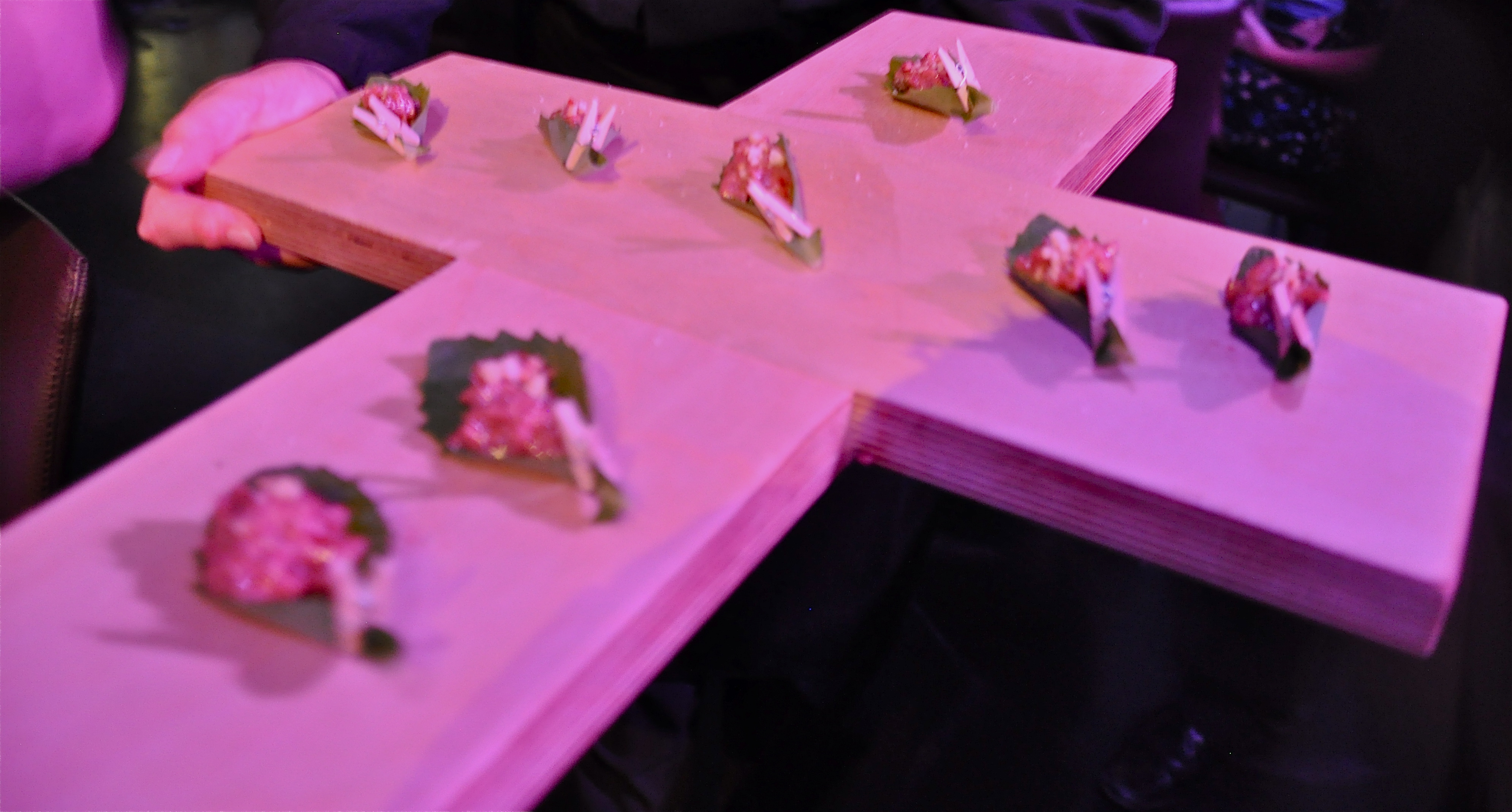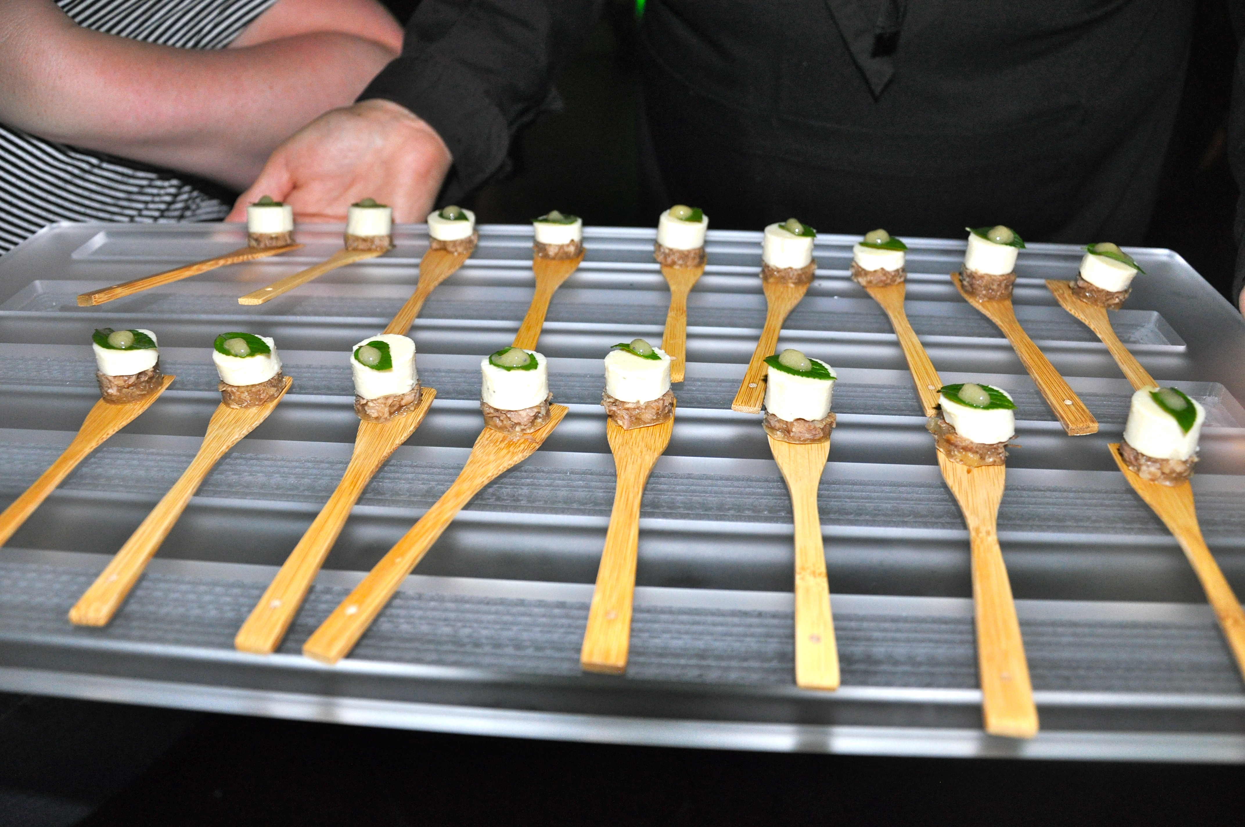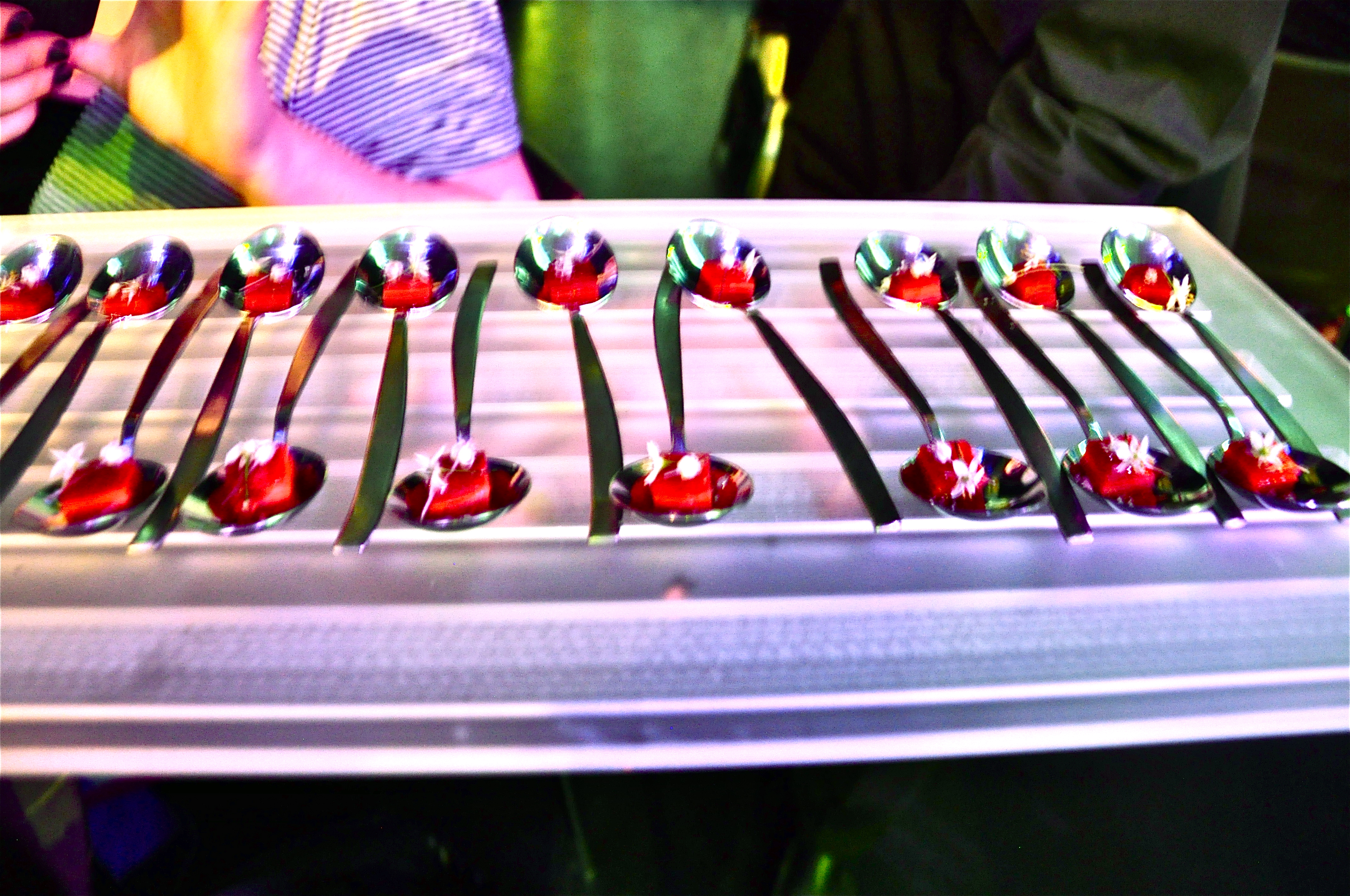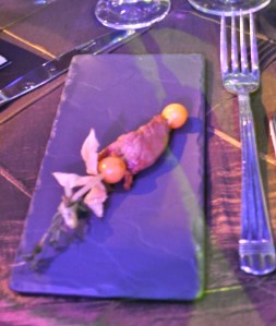 Au niveau des tendances présentées, je dois avouer avoir été un peu déçu par leur livre blanc des tendances culinaires. Très évasif, pas illustré, on y exposait les grandes tendances déjà présentes dans le milieu culinaire. Ayant étudié en commercialisation de la mode, je deviens toujours un peu plus critique lorsque l’on parle de tendance – déformation professionnelle. J’aurais aimé un livre qui nous présente des plats, des associations de goûts, des couleurs, des accords alimentaires ou encore des innovations culinaires. La soirée vient ici servir de complément au livre, car on nous y a présenté des plats hauts en couleur. Ceci dit, quelqu’un qui n’a que le livre restera sur sa faim.