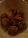 J’ai commandé les escargots frits, accompagnés d’une mayonnaise maison extrêmement savoureuse (voir ma recette d’escargot à l’ail). Un pur délice, les escargots étaient tendres et goûteux. C’est une belle idée d’apprêter les escargots de cette façon, j’ai adoré l’expérience.
